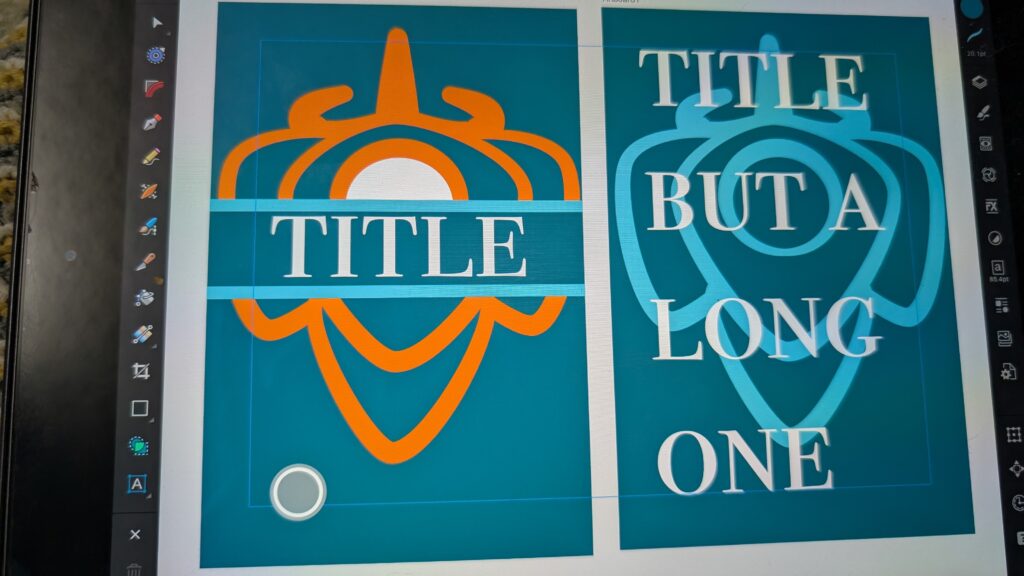 Also, decided to get the tablet out and figure out some stuff with the covers! I still don’t know what the titles of these books are, but I think I have a general idea of what I’m doing with the art for each of the covers will be. I am leaning toward a long title this time around, though, albeit with a different font.jrwi